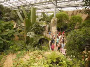 - La serre tropicale : 5000 m² de végétations parmi lesquelles se cachent gavials du Gange, chauves-souris géantes, perroquets, grenouilles multicolores et autres petits singes.