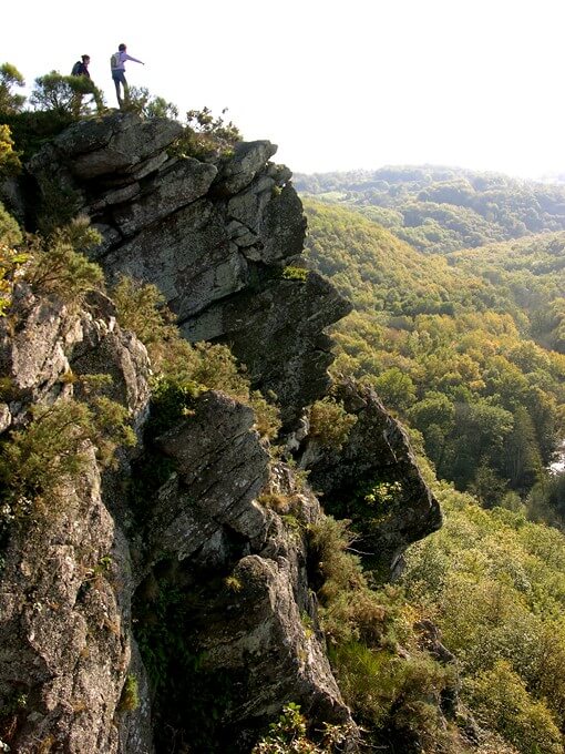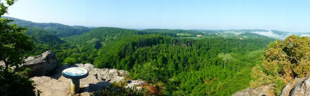 Un site spectaculaire, dominant les gorges de la Rouvre au fond desquelles serpente un torrent impétueux. Imaginez un belvédère du haut duquel on embrasse toute la Suisse Normande…